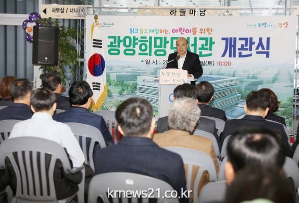 광양시는 12월 30일 광양읍사무소 건너편에 있는 어린이 전문 도서관인 ‘광양희망도서관’ 개관식을 가졌다고 밝혔다.