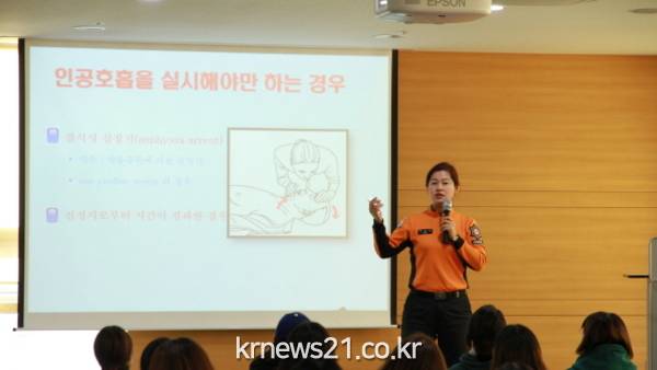이번 교육은 ▲심폐소생술 교육 및 실습 ▲자동심장충적기 사용방법 ▲기도폐쇄 응급처치 등으로 진행됐다.