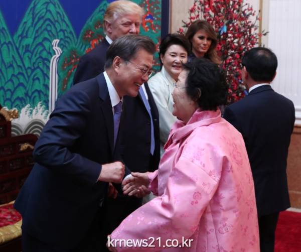 문재인 대통령은 4일 청와대로 위안부피해 할머니들을 초청해 오찬을 함께한다.