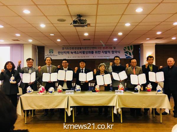 경기도 친환경생활지원 안산센터가 주관하는 ‘안산지역 녹색소비활성화를 위한 자발적 협약식’이 지난 12월 21일 안산문화예술의전당 W.이니티움 웨딩컨벤션에서 개최됐다.