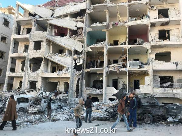 ▲ AFP / OMAR HAJ KADOUR[제공자ⓒ 뉴스21통신. 무단전재-재배포 금지.]시리아 이들리브의 지하디스트(이슬람 성전주의자) 본부가 폭발로 파괴됐다. 시리아 정부군은 7일(현지시각) 이들리브 지역의 전략적 요충지를 점령했다고 밝혔다. 바샤르 알 아사드 시리아 정권의 정부군은 러시아의 지원하에 지난달부터 탈환작전에 박차를 가하고 있다.