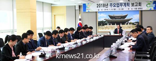 이번 보고회는 기획예산담당관을 시작으로 3개 담당관, 6국, 2직속기관, 4사업소의 부서장, 팀장, 담당자가 참석해 올해 중점적으로 추진할 주요업무계획에 대한 부서별 보고 형식으로 진행되며 오는 12일까지 진행될 예정이다.
