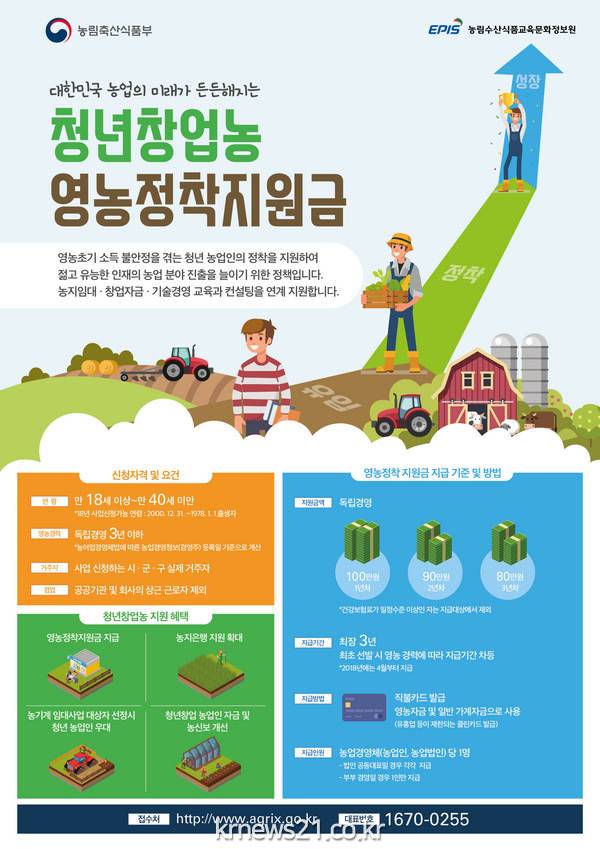 경기도 관계자는 “젊고 유능한 인재의 농업분야 진입장벽을 해소하고 청년창업농이 성공적으로 정착해 전문경영체로 성장할 수 있도록 최선을 다 하겠다”고 말했다.