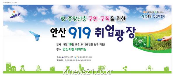 안산시(시장 제종길)는 오는 1월 19일 오후 2시부터 4시까지 안산시청 대회의실에서 청·중·장년층을 대상으로 2018년 새해 첫『안산919취업광장』을 개최한다고 밝혔다.