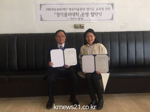 경기도 광주하남 교육지원청(교육장 안락규)은 2018년 1월 5일(금) 경기도 광주시에 소재한 영은 미술관(관장 백선주)과 경기 꿈의 대학 신규 전문기관으로 업무협약을 체결했다.