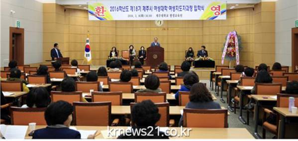 제주시에서는 여성의 정치‧사회 참여 활성화와 지역사회 발전에 선도적 역할을 담당할 여성지도자를 양성하기 위한 '2018년 제20기 제주시여성대학 여성지도자과정 수강생을 모집한다.