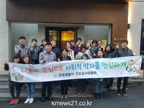 이번 간담회는 평소 사회적 약자 보호의 중요성을 강조해 오던 안성경찰서와 선도심사위원회(위원 이종선)가 함께 뜻을 모아 추진한 것으로 2018년 1월 15일 오후 4시30분에 보개면에 위치한 ‘보나카바’ 레스토랑에서 진행되었다.