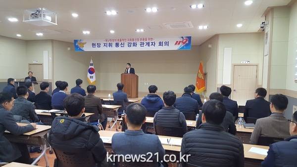 전라남도소방본부는 19일 전남소방학교에서 일선 소방관서의 현장대응지휘·상황관리 인력 50여 명을 대상으로 ‘현장 지휘 통신 강화 관계자 회의’를 열었습니다.