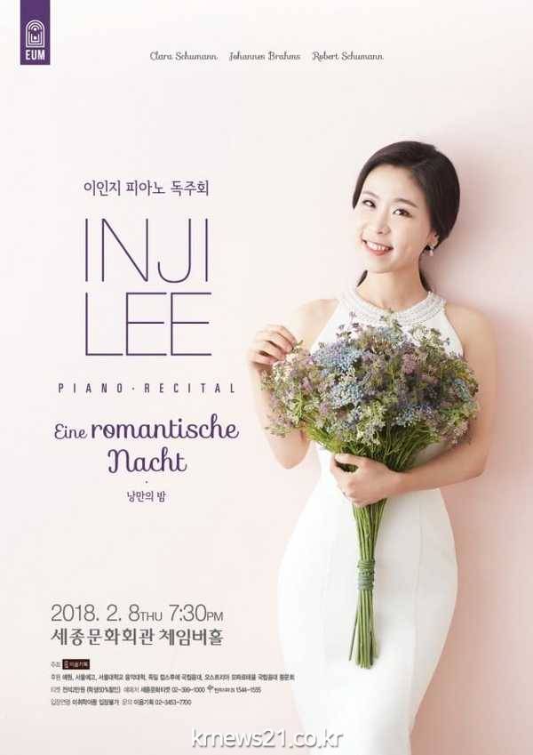 이음기획이 주최하고 예원, 서울예고, 서울대학교 음악대학, 독일 칼스루에 국립음대, 오스트리아 모짜르테움 국립음대 동문회에서 후원하는 이번 독주회에서는 ‘Eine romantische Nacht (낭만의 밤)’이라는 부제로 낭만시대 작곡가인 로베르트슈만, 클라라슈만 그리고 브람스의 곡들을 피아니스트 이인지의 아름다운 선율로 선사한다.