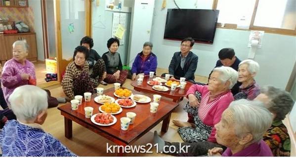 완주군 화산면이 관내 경로당을 돌며 지역주민과 소통행정에 박차를 가하고 있다.
