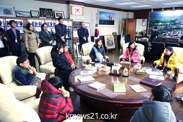 경주시가 추진하는 ‘열린 시장실’ 프로그램을 신청한 푸르른지역아동센타와 미래지역아동센터 학생 20명은 27일 오전 경주시청을 찾아 시장실 체험과 모의 시정회의를 하는 등 시정에 대해 직접 체험하는 시간을 가졌다.