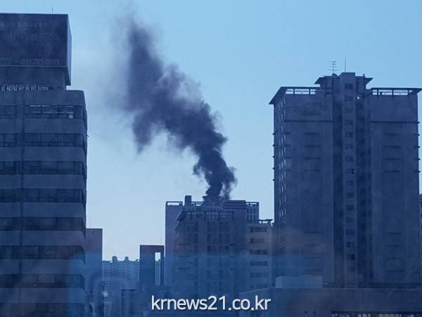 29일 오전 11시 20분경 울산 남구 신정동의 한 신축 오피스텔 옥상에서 불이 나 15분여만에 진화됐다.