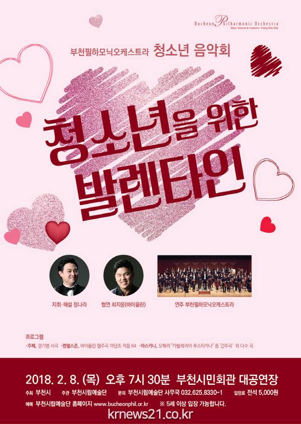 부천필하모닉오케스트라(부천필)의 ‘청소년을 위한 발렌타인’이 다음달 8일 오후 7시 30분 부천시민회관대공연장에서 진행된다.