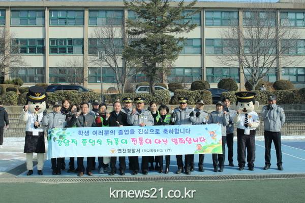 2. 8일 오전 전곡중학교 대강당 앞에서 경찰서장, 군수, 전곡고등학교 교사, 학부모 폴리스, 어머니 폴리스, 연천군 청소년상담복지센터 등 50여명이 참여한 가운데 강압적 졸업식 뒤풀이 예방을 위한 캠페인을 실시하였다.