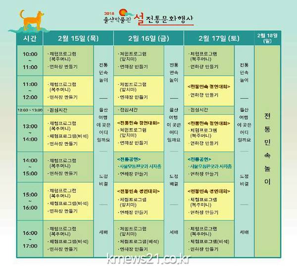 울산박물관과 대곡박물관은 설날을 맞아 15일부터 18일까지 ‘2018년 설날 전통문화행사’를 운영한다고 밝혔다.