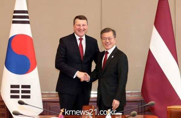 한편 이날 회담에는 라트비아 측에서 아쉐라덴즈 부총리 겸 경제부장관, 링케비취스 외교부장관, 바이바르스 주한라트비아대사, 카제카 대통령실 부실장, 마니카 대통령 외교정책보좌관, 펠쉬스 외교부 정무차관이, 우리 측에서는 강경화 외교부장관, 남관표 국가안보실 2차장, 김수현 사회수석, 신재현 외교정책비서관, 이태호 통상비서관 등이 배석했다.