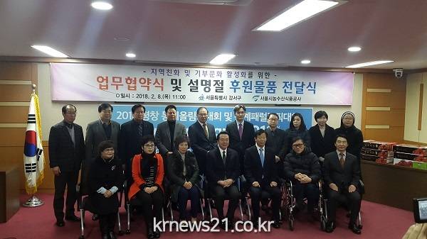 또한, 2018년 설을 맞이하여 공사는 강서도매시장 유통인 및 임대입주자들과 함께 설맞이 과일나눔 행사를 실시하였다. 강서구 내 어려운 이웃들을 위해 모은 과일 440상자와 쌀, 김, 라면 등 총 1,200만원 상당의 물품을 각 사회복지단체에 전달했다.