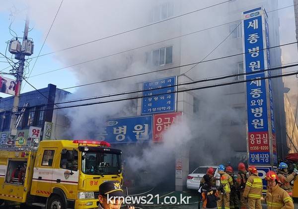밀양 세종병원은 지난달 26일 오전 1층 응급실 내 탕비실 천장에서 전기 합선으로 불이 나 대규모 인명피해가 발생했다.