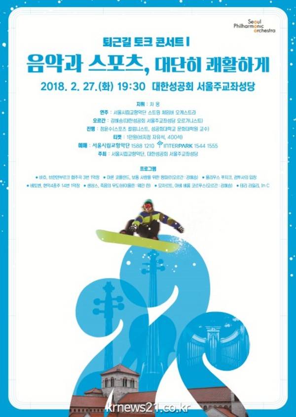 서울시향은 오는 27일 중구 대한성공회 서울주교좌성당에서 '2018 퇴근길 토크 콘서트Ⅰ- 음악과 스포츠, 대단히 쾌활하게'를 선보인다.