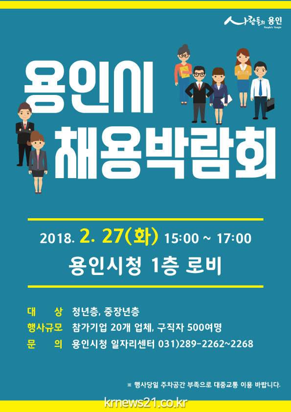 용인시는 구직자들에게 취업기회를 제공하는 올해 첫 채용박람회를 오는 27일 오후 3시부터 시청로비에서 개최한다고 밝혔다.