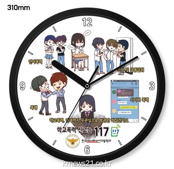 하남경찰서(서장 강도희)에서는 2018년도 학교폭력 없는 안전한 학교를 위하여 학교폭력 예방 애니메이션 벽시계를 제작하여 하남 관내 초·중·고 43개교(총 360개) 교실에 설치를 완료했다고 밝혔다.