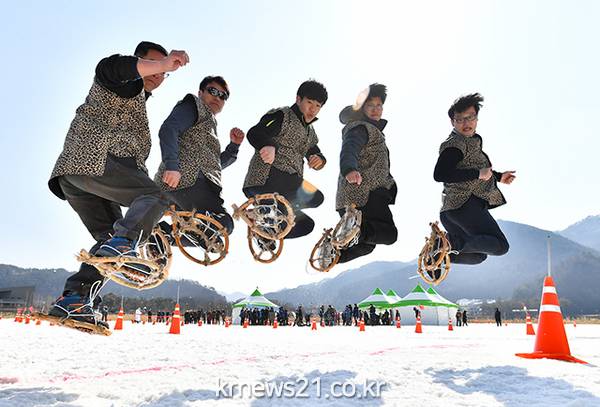 이색 설상스포츠는 눈 신발로 알려진 설피와 전통스키, 눈썰매 등을 활용한 설상 3종 릴레이 경주대회이다.
