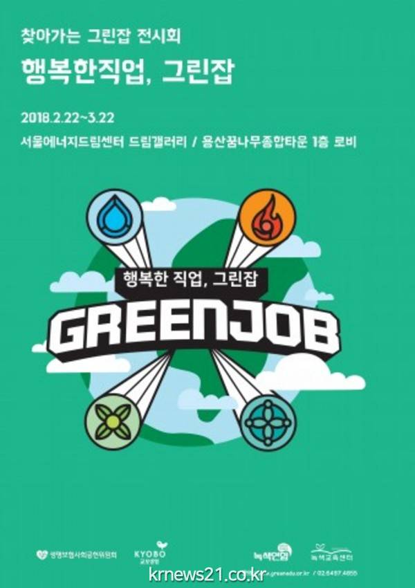 (사)녹색연합(상임대표 조현철)과 (사)녹색교육센터(상임이사 박영신)가 생명보험사회공헌위원회와 교보생명의 후원으로 22일부터 서울에너지드림센터 드림갤러리와 용산꿈나무종합타운 1층 로비에서 ‘찾아가는 그린잡’ 전시를 개최한다.