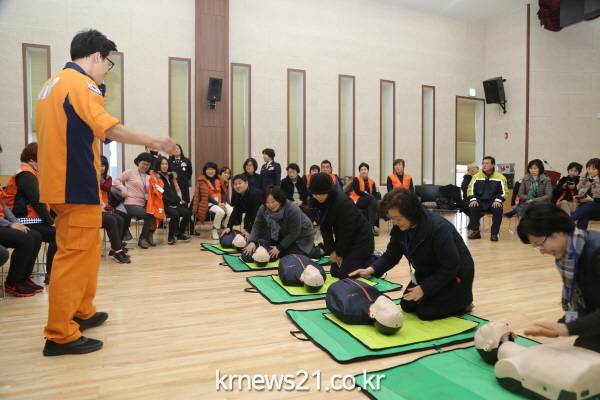 성동소방서(서장 김성회)는 지난 22일 6층 강당에서 의용소방대원 60여 명을 대상으로 심폐소생술 교육을 실시했다.
