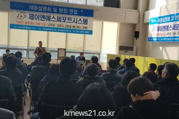 J&S써포트시스템은 이마트물류센터를 관리하는 업체다. 이날은 상품입출고직 총 70명 채용을 위해 마련된 것으로 행사현장은 긴 겨울의 끝자락, 새싹 같은 일자리를 찾기 위한 구직자들로 붐볐다.