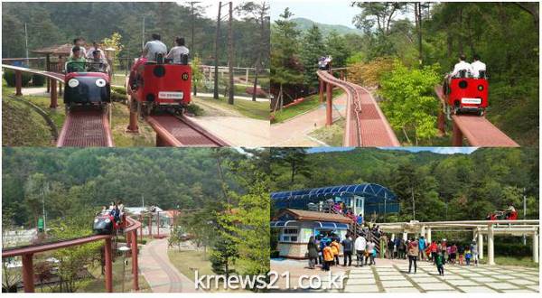 속리산 청청자연 속에서 솔잎 향기를 느끼며 달릴 수 있는 솔향공원 스카이 바이크가 지난 27일 시운행을 마치고 다음달 1일 개장한다.