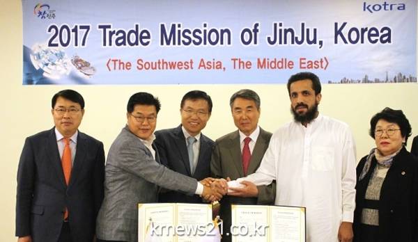 시는 2017년 2월엔 인도, 파키스탄, 이란, 미국, 캐나다에서 해외 세일즈를 펼친 진주시 종합무역사절단이 시 수출 주력품목인 기계류, 실크, 바이오제품, 신선농산물 등에 걸쳐 맞춤형·공격적 마케팅을 펼쳤다.