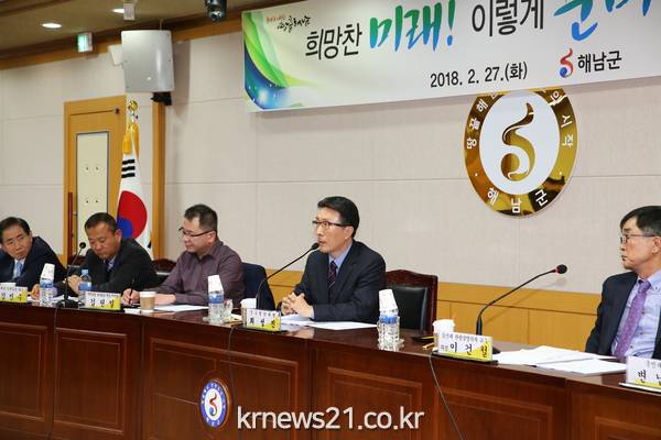 군은 지난 27일 해남군 미래설계를 위한 전문가 초청 토론회를 갖고, 분야별 군정 미래전략 및 추진과제에 대해 검토했다.