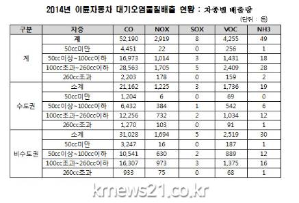 환경부는 중‧소형 이륜차의 신고 대수는 195만대로 대형 이륜차 8.5만대 보다 월등히 많아 휘발성유기화합물(VOC) 등 오염물질량도 연간 4~13배 많이 배출하는 것으로 보고 있다.