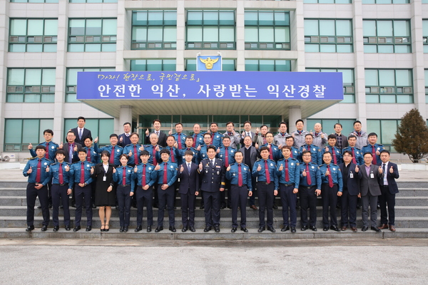 강인철(치안감) 전북지방경찰청장이 소통의 일환으로 현장의 다양한 의견을 청취하기 위해 9일 익산경찰서(서장 이상주)를 방문하여 협력단체 및 신임 경찰들과 소통하는 간담회를 가졌다.