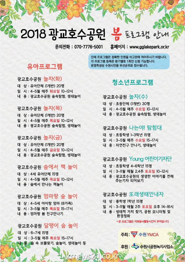 문의: 070-7776-5001, 수원YMCA 광교호수공원 프로그램 운영 팀.