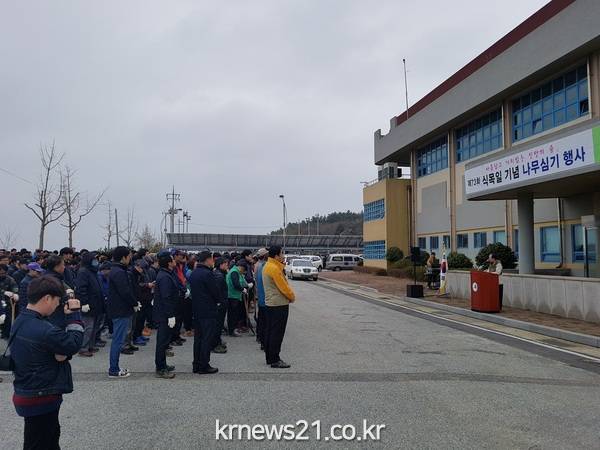 이번 행사에는 주민·유관기관단체·공무원 등 450여명이 참여하여 편백나무, 산딸나무 1,000그루를 식재하고 올해 나무심기의 시작을 알렸다.