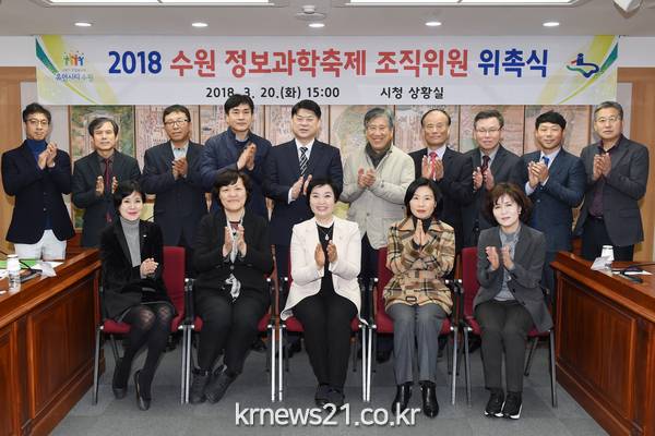 수원시는 20일 시청 상황실에서 ‘제15회 수원정보과학축제 조직위원회 위원 위촉식’을 열고, 위원 15명을 위촉했다.