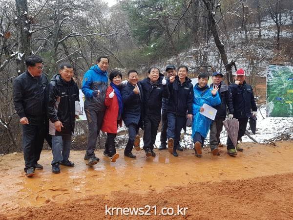 바로 이어 군민 건강걷기 행사가 숲속 둘레길에서 진행됐다. 설경이 장관을 이룬 숲속에 봄소식을 알리는 진달래꽃이 활짝 피어 참여자들은 겨울산과 봄꽃이 어우러진 진귀한 광경 속 자연과 하나 되는 특별한 추억을 만들었다.
