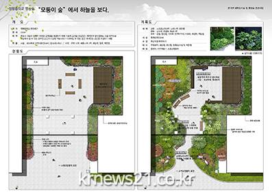 올해는 6,000만원의 예산으로 이 학교 내 ‘모퉁이 숲’으로 불리는 중정공간에 다양한 초목으로 꾸민 커뮤니티 쉼터를 조성하게 된다. 이곳엔 소나무와 단풍나무, 느티나무 등의 나무와 초롱꽃·산수국·비비추 등 야생화를 심어 학생들과 주민들이 즐길 수 있도록 할 예정이다.