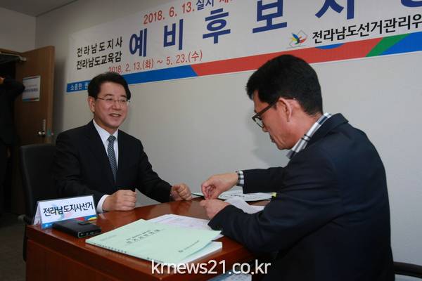 (뉴스21/장병기기자)=김영록 문재인정부 초대 농림축산식품부 장관이 26일 6.13 지방선거 전남도지사 예비후보 등록을 마치고 본격적인 활동에 들어갔다.
