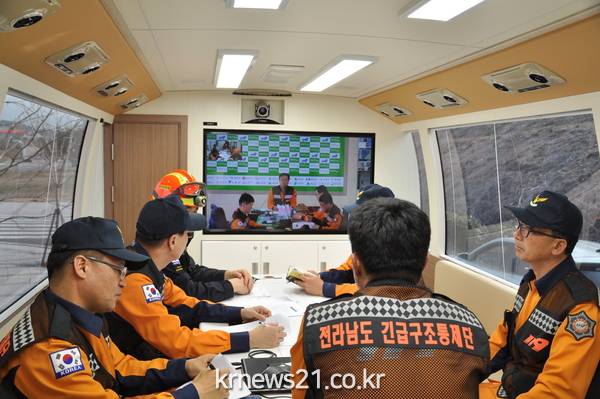 (뉴스21/장병기기자)=전라남도소방본부는 각종 대형 재난 현장 대응력 향상과 통합지휘체계 및 유관기관과의 공조체제 구축을 위해 지난 27일 영암 삼호읍 종합문화체육센터에서 긴급구조통제단 불시 가동훈련을 실시했다.