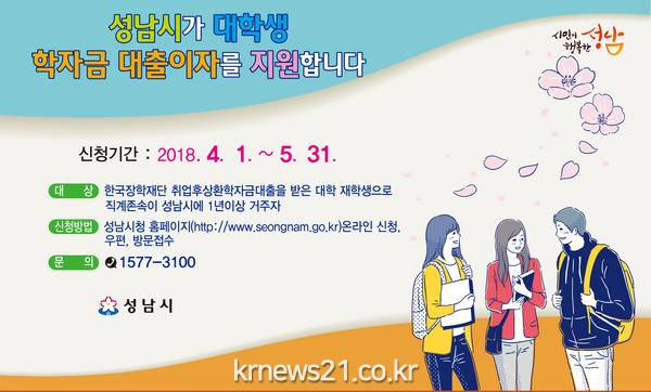 성남시가 올해로 6년째 대학생 학자금 대출 이자 지원에 나선다.