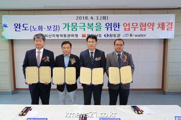 주동식 실장은 “이번 협약은 각 기관 간 단순 협약 수준을 넘어 주민 불편사항인 제한급수를 해결하기 위한 실질적 협업을 위한 것이자, 보길도․노화도 지역 가뭄 극복의 마중물이 될 것”이라며 “앞으로도 가뭄 우심지역에 대해서는 시군, 중앙부처와 협업을 통해 가뭄을 극복해나가도록 하겠다”고 밝혔다.