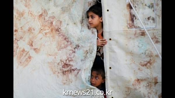 ▲ AFP / MOHAMMED ABED[제공자ⓒ 뉴스21통신. 무단전재-재배포 금지.]가자지구에서 팔레스타인 시위자들과 이스라엘 군대 간의 충돌이 일어나고 있는 가운데 팔레스타인 어린이들이 텐트 안에서 밖을 바라보고 있다. 지난달 30일(현지시간) 42회 '땅의 날' 시위에 이스라엘군의 공격으로 팔레스타인 17명이 사망하고 1400여 명이 부상을 입었다. '땅의 날'은 팔레스타인인들이 소유한 토지를 몰수하기로 한 이스라엘 정부에 항의하는 시위이다.