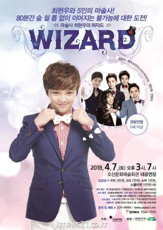 오산문화재단은 4월 기획공연의 시작으로 오는 7일‘최현우의 WIZARD(위자드)’로 클로즈업, 멘탈, 팔러, 스테이지, 일루젼 등 다양한 장르를 넘나드는 공연을 선보인다고 밝혔다.