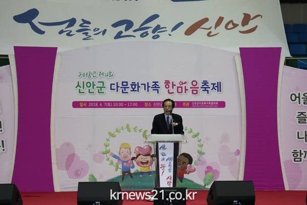 (뉴스21/장병기기자)=신안군 다문화가족협의회 주관으로 지난7일 오전 10시부터 ‘문화나눔, 마음나눔, 행복나눔’이란 슬로건으로 신안군민체육관에서 다문화가족 한마음 축제 행사가 개최되었다.