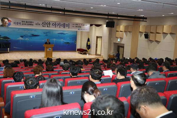 (뉴스21/장병기기자)=신안군은 4월 10일 10시에 신안군청 대공연장에서 주민, 학생, 공무원 등 300여 명이 참석한 가운데 제1회 신안아카데미 교양강좌를 개최했다.