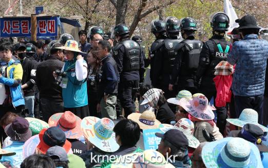경찰은 이날 오전 공사 장비를 실은 차량의 진입로 확보를 위해 3000여명의 경찰을 사드 기지 길목인 소성리 일대에 배치했다.