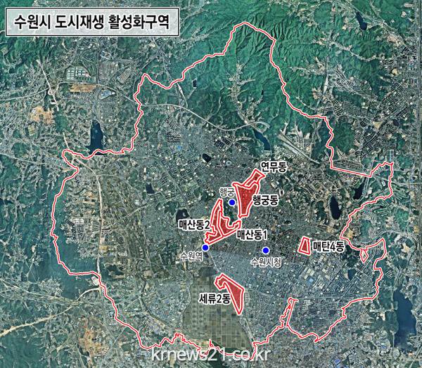 경기도가 수원시가 제출한 도시재생 전략계획을 승인함에 따라 매산동(2), 행궁동(1), 연무동(1), 세류2동(1), 매탄4동(1) 등 5개동 6개소에서 도시재생 뉴딜사업이 추진된다.