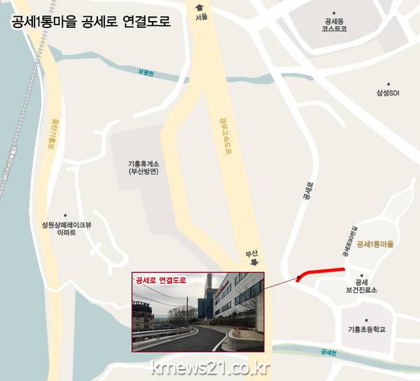 이에 기흥구는 주민 불편을 해소코자 총 사업비 7억 원을 들여 지난 2016년 10월에 공세로 연결도로를 신설하는 공사에 착수해 이달 초 준공한 것이다.